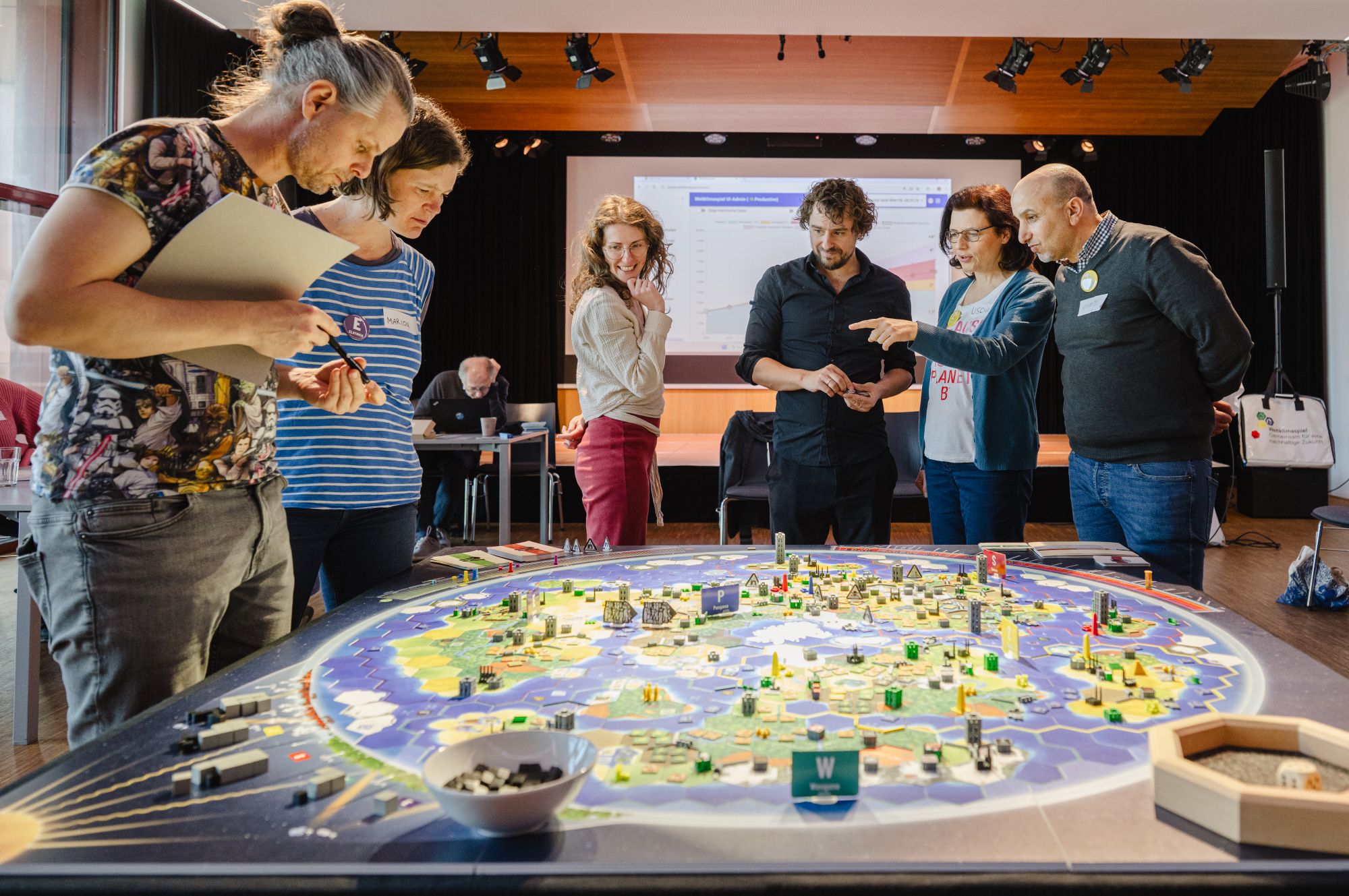 Das Weltklimaspiel ist ein dreitägiges, app-gestütztes Planspiel auf einem großem Spielbrett, das die komplexen wirtschaftlichen, gesellschaftlichen, politischen und ökologischen Zusammenhänge unserer Welt erlebbar macht. Basierend auf wissenschaftlichen Simulationen erleben Teilnehme hautnah, wie politische Entscheidungen, Ressourcenverteilung, Innovation und Kooperation zusammenhängen – und wie jede Handlung Konsequenzen hat.